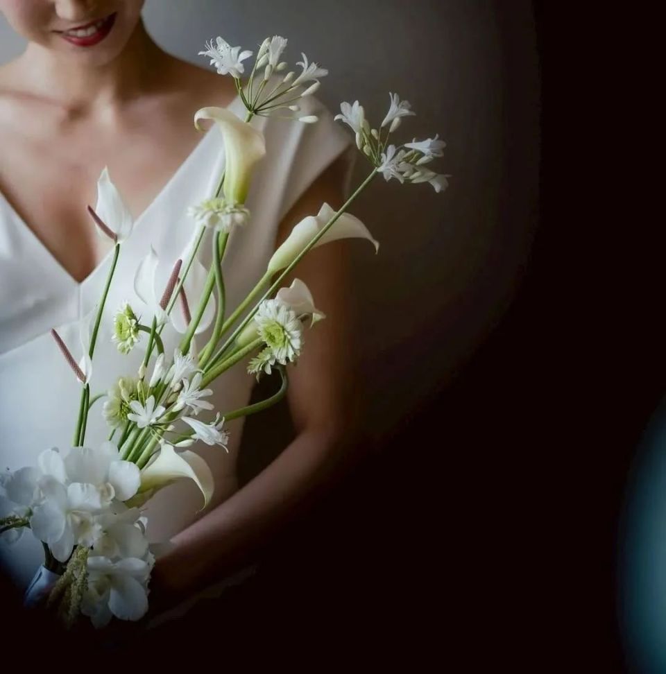 从这次公开的照片中可以看到,古贺纱理那身穿精致的长袖蕾丝婚纱,花瓣刺绣绵延至裙摆,优雅中流露温柔气质。她怀抱花束,站在新郎身边,面带自信笑容。西田有志则一袭黑色西装配领结,干练俊朗,手中拿着白色手套,两人站在暖色灯光下相视而笑,画面温暖动人。
